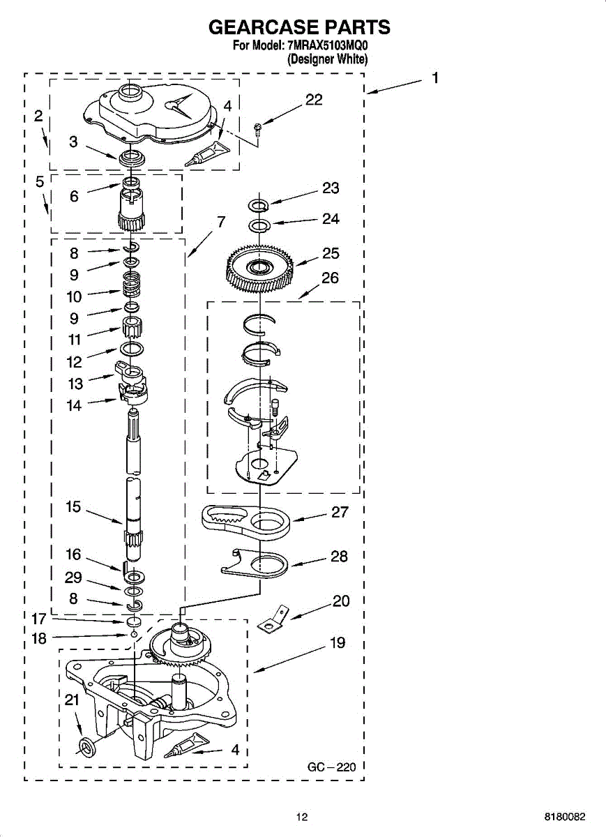Parts for Roper 7MRAX5103MQ0: 08 - Gearcase Parts