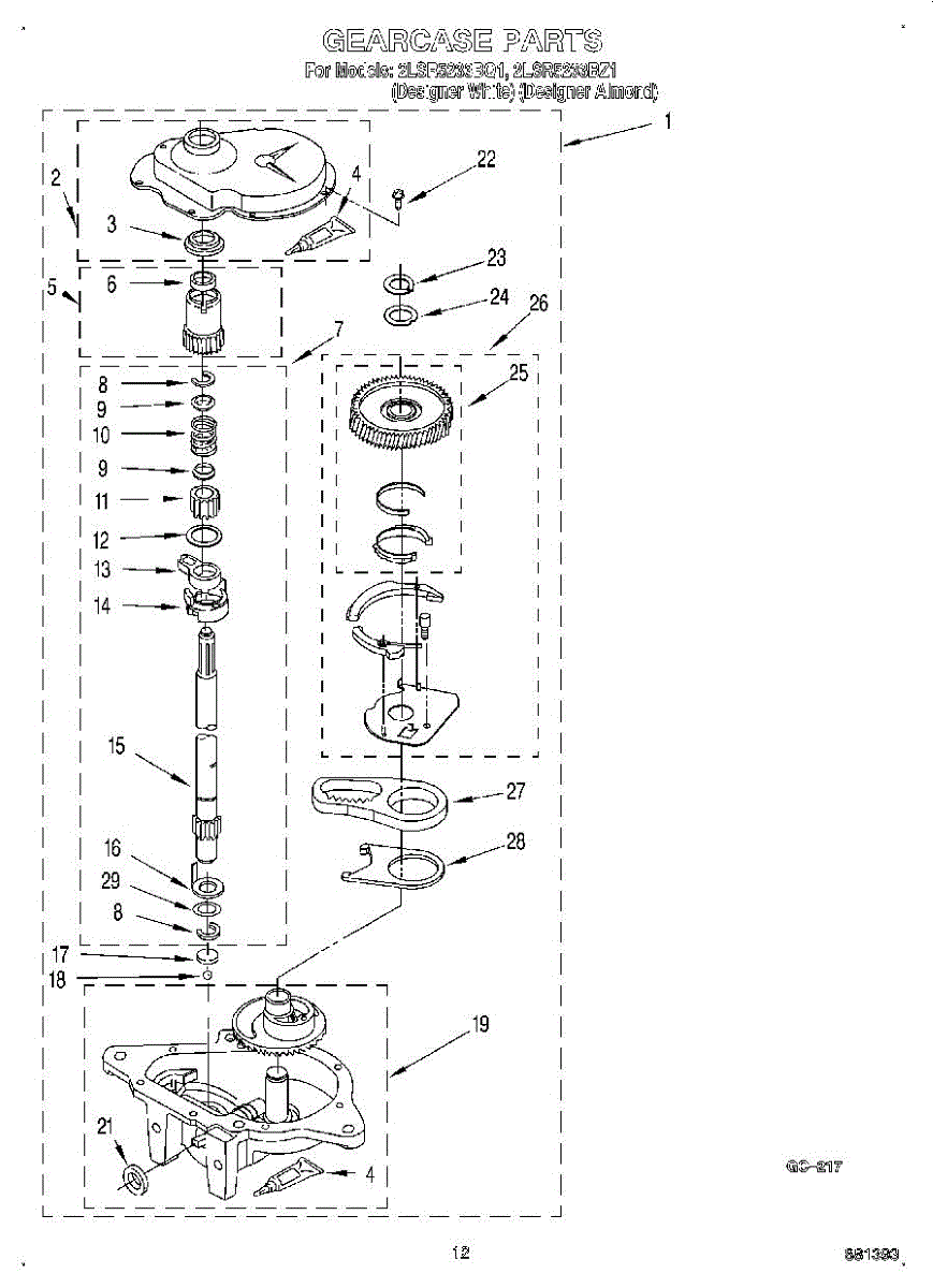 Parts for Whirlpool 2LSR5233BQ1: 08 - Gearcase Parts