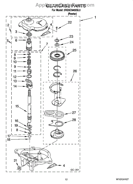 This gearcase is the washer transmission housing that supports the drive gears and enables the agitator/spin functions to transfer motor torque to the wash basket. Replacing a worn gearcase restores reliable mechanical drive and reduces grinding or slipping. What it does: