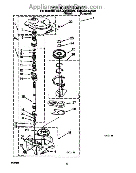 Parts for Whirlpool 6MAL5143AW0: Gearcase Parts