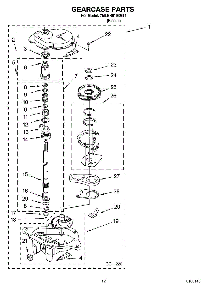 Parts for Whirlpool 7MLBR6103MT1: 08 - Gearcase Parts