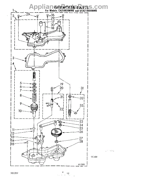 Parts for Whirlpool CA2180XMW0: 10 - Gearcase Parts