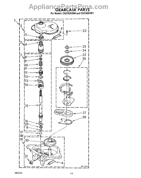 Parts for Whirlpool CA2762XSW0: 12 - Gearcase Parts