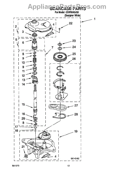 Parts for Whirlpool GSW9545JQ0: 09 - Gearcase Parts