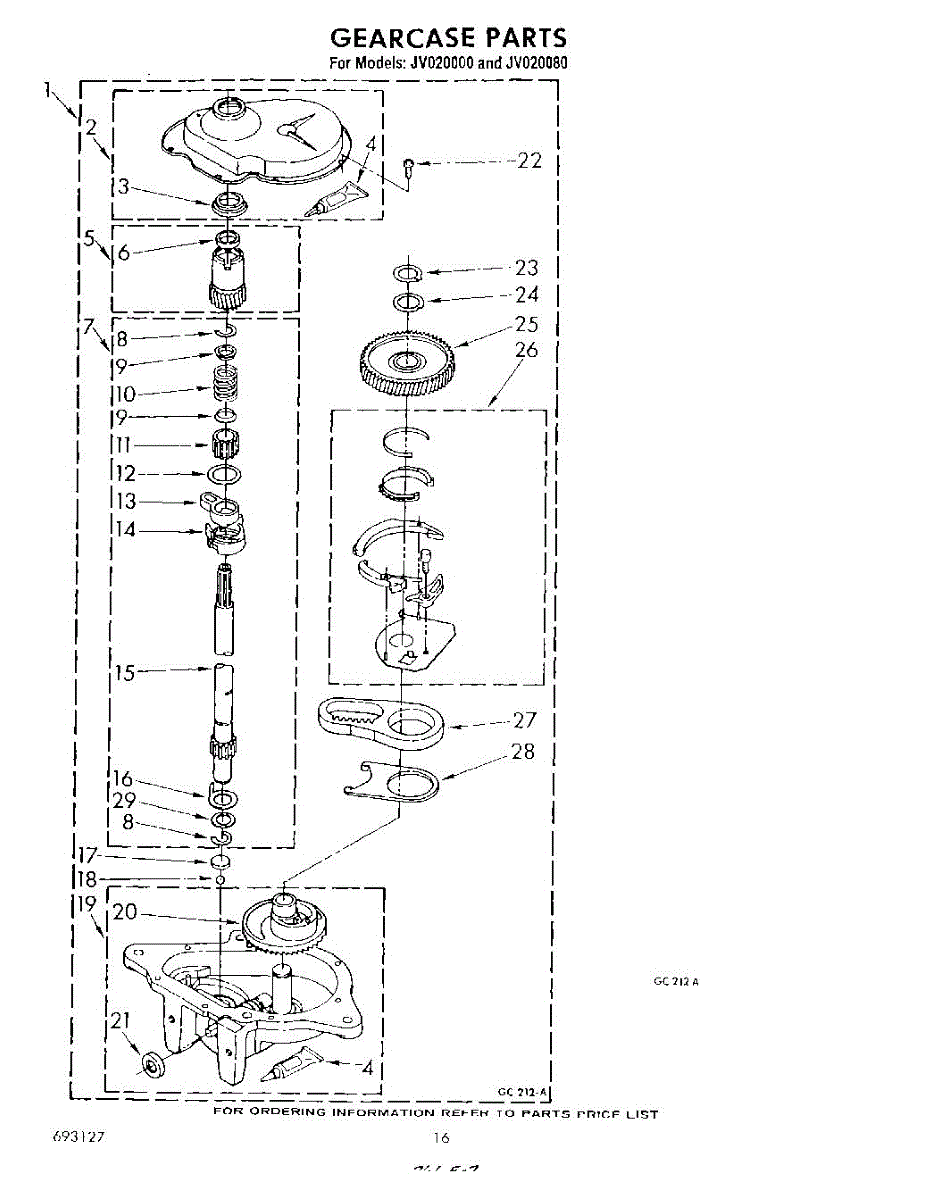 Parts for Whirlpool JV020000: 13 - Gearcase Parts