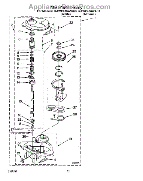 Parts for Kitchenaid KAWE460WAL3: 10 - Gearcase Parts