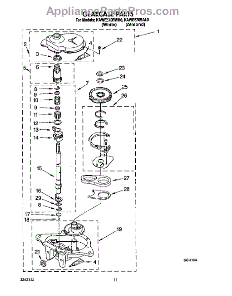 Parts for Kitchenaid KAWE570BWH0: 09 - Gearcase Parts