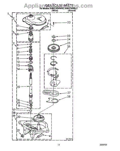 Parts for Kitchenaid KAWE760WAL2: 10 - Gearcase Parts