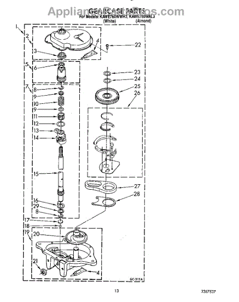 Parts for Kitchenaid KAWE760WAL3: 10 - Gearcase Parts