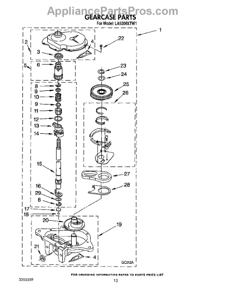Parts for Whirlpool LA5200XTW1: 11 - Gearcase Parts
