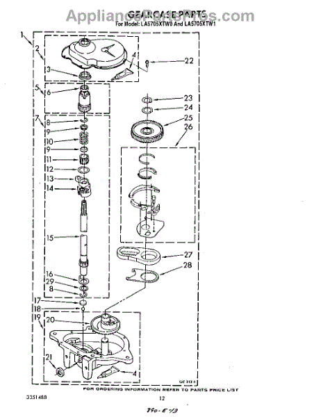 Supports the washer transmission shaft to reduce axial wear and noise. Replace when you hear grinding sounds or experience rough operation. Confirm fit with your model number.