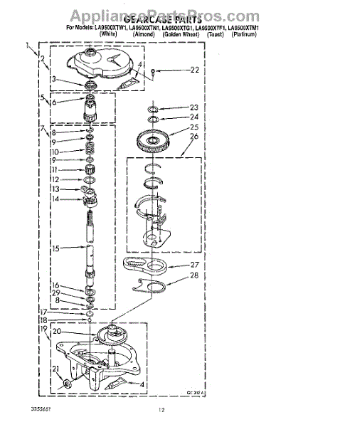 Parts for Whirlpool LA9500XTF1: 11 - Gearcase Parts