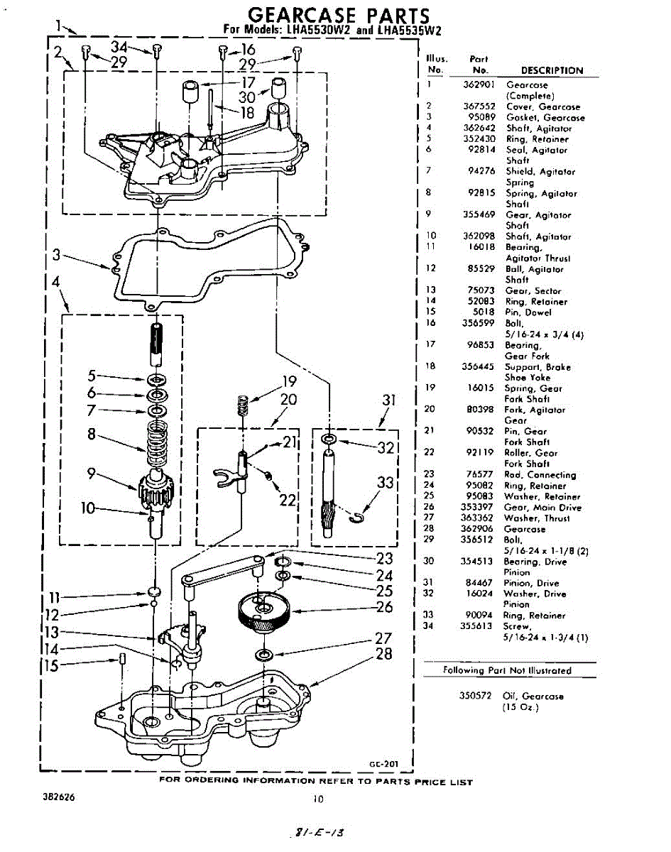 Parts for Whirlpool LHA5535W2: 10 - Gearcase Parts