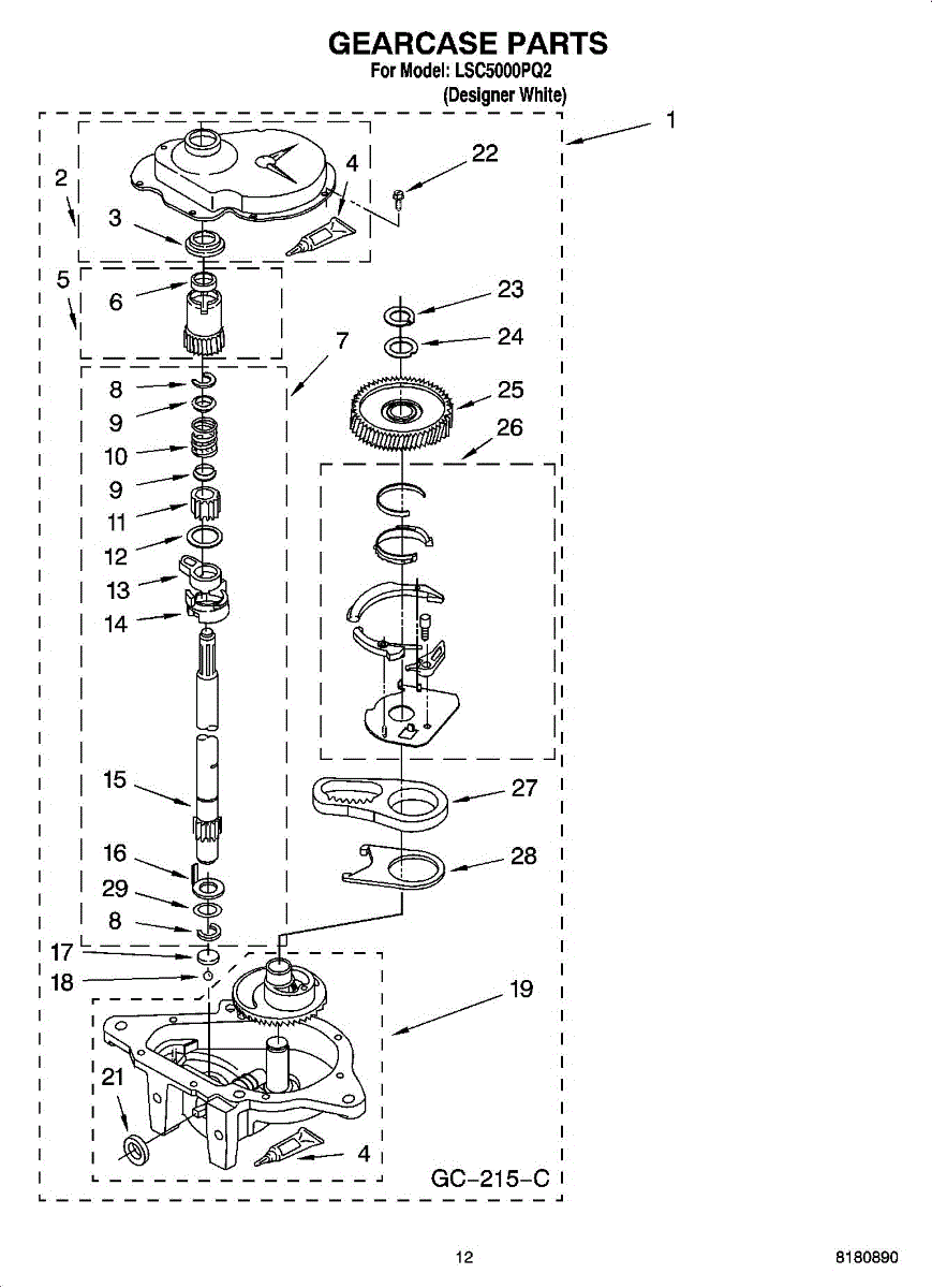 Parts for Whirlpool LSC5000PQ2: 08 - Gearcase Parts