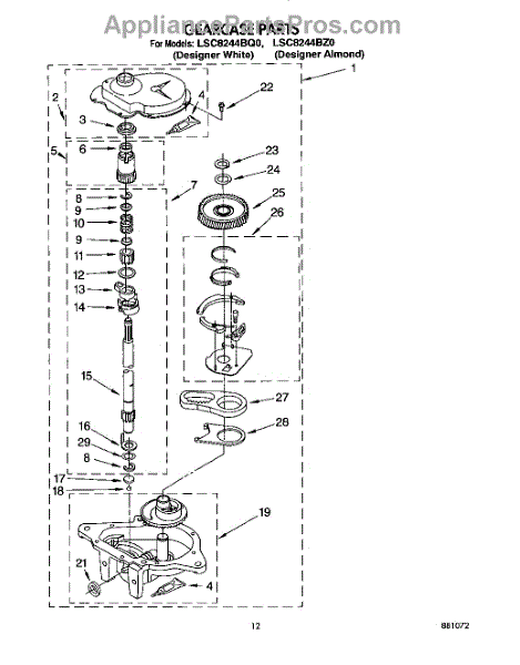 Parts for Whirlpool LSC8244BQ0: 10 - Gearcase Parts