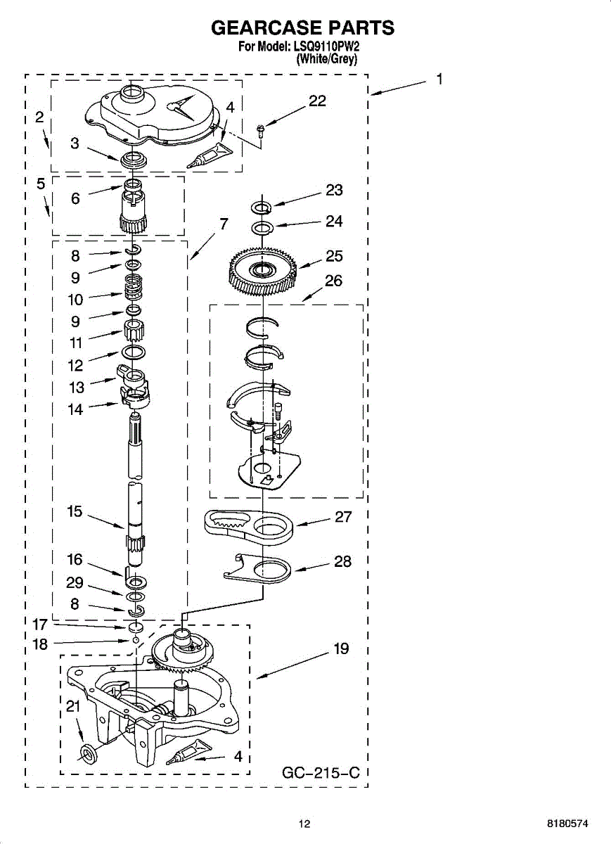 Parts for Whirlpool LSQ9110PW2: 08 - Gearcase Parts