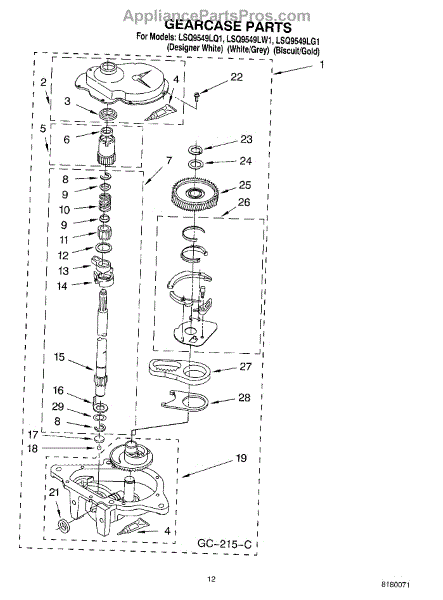 Parts for Whirlpool LSQ9549LQ1: 08 - Gearcase Parts
