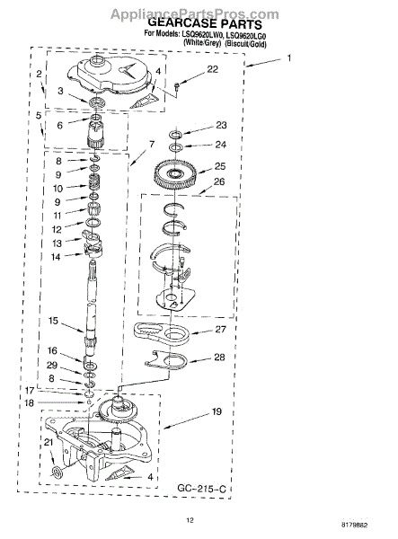 Parts for Whirlpool LSQ9620LG0: 08 - Gearcase Parts