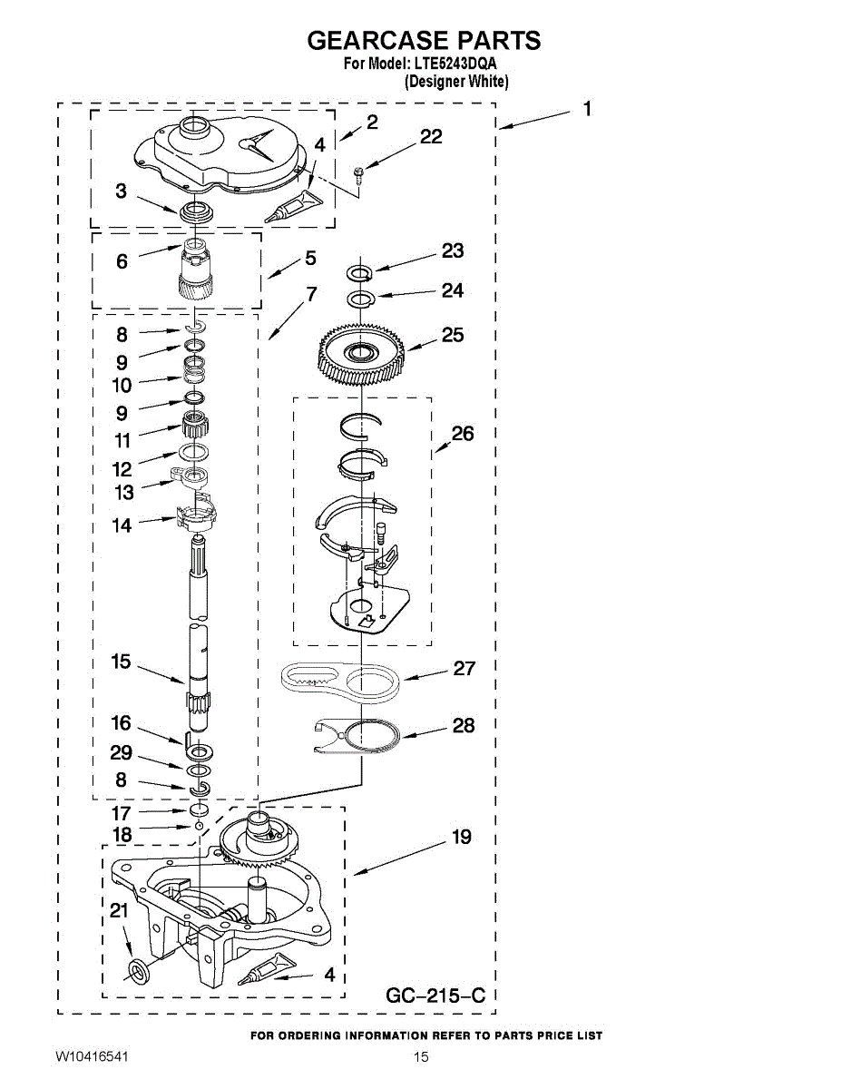 Parts for Whirlpool LTE5243DQA: 12 - Gearcase Parts