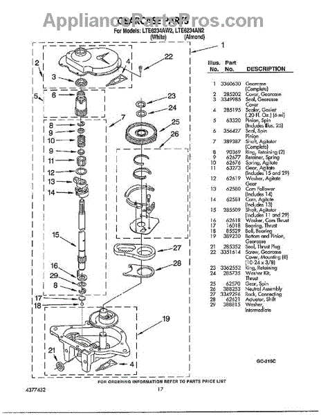 Parts for Whirlpool LTE6243AN2: Gearcase Parts