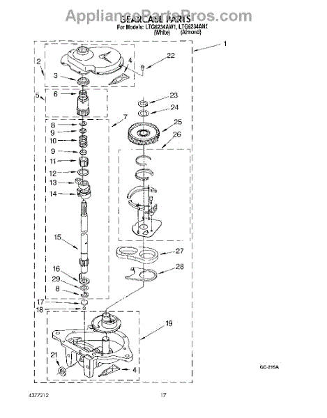 Parts for Whirlpool LTG6234AN1: 11 - Gearcase Parts