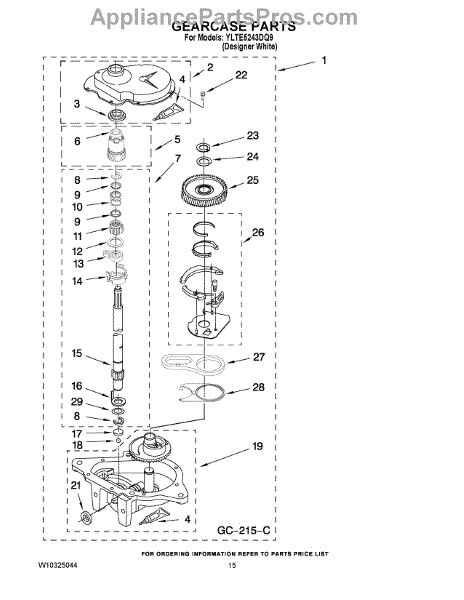 Parts for Whirlpool YLTE5243DQ9: 12 - Gearcase Parts