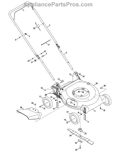This is a genuine replacement lower handle part. The lower handle is used on push lawn mowers. This handle connects the upper handle to the mower. This part should be replaced when there is damage to the bolt holes or if it is bent. It is not easily worn, and therefore does not have to be replaced often.To replace this part, a 7/16th inch wrench or a 9/16th inch socket wrench is needed. Remove the upper shoulder bolt to detach the upper handle. Remove the lower handle and place the new replacement part. Bolt the upper handle to the lower handle. On occasion, the bolt connecting the handles may need replacement if worn. Any new bolts will need to be purchased separately. Otherwise, previous bolts used on the worn lower handle can be reused. If the part is bent, replacement may require a mallet to dislodge or remove the damaged part. This is a genuine MTD replacement part. This part is compatible with most lawn mowers. This part is sold separately.