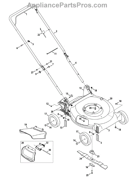 This is a genuine replacement lower handle part. The lower handle is used on push lawn mowers. This handle connects the upper handle to the mower. This part should be replaced when there is damage to the bolt holes or if it is bent. It is not easily worn, and therefore does not have to be replaced often.To replace this part, a 7/16th inch wrench or a 9/16th inch socket wrench is needed. Remove the upper shoulder bolt to detach the upper handle. Remove the lower handle and place the new replacement part. Bolt the upper handle to the lower handle. On occasion, the bolt connecting the handles may need replacement if worn. Any new bolts will need to be purchased separately. Otherwise, previous bolts used on the worn lower handle can be reused. If the part is bent, replacement may require a mallet to dislodge or remove the damaged part. This is a genuine MTD replacement part. This part is compatible with most lawn mowers. This part is sold separately.