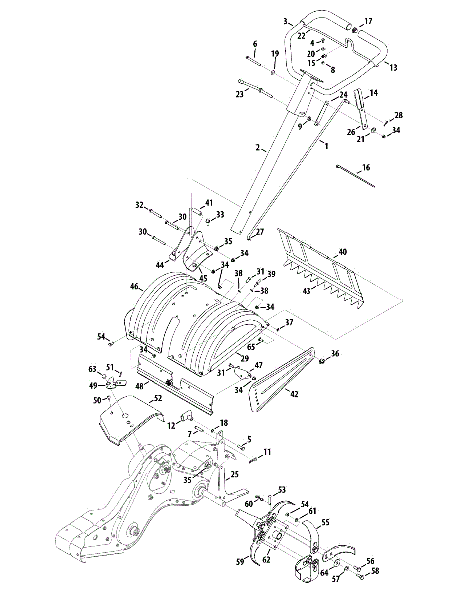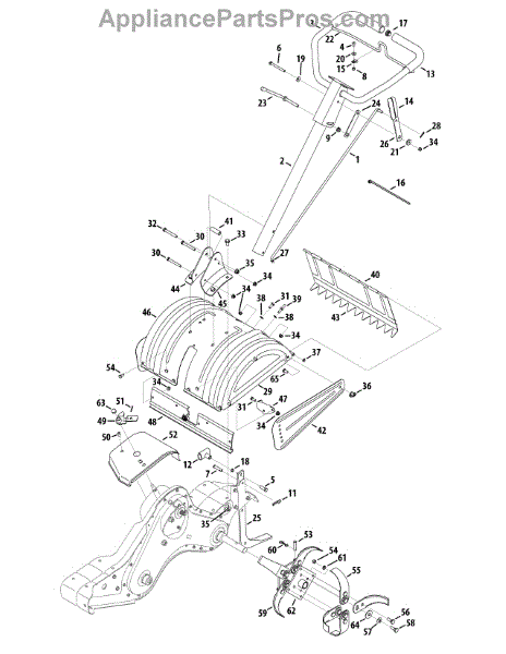 Replacement debris guard flap for rear-tine tillers. Shields operator from flying rocks and soil. Replace if torn, cracked, bent, or missing.