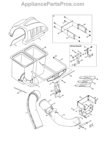 This lower grassbag chute is a genuine MTD part, sold individually. This lower grassbag chute can be used as a replacement part in a lawn mower. The purpose of the lower grassbag chute in a lawn mower is to collect grass clippings.The lower grassbag chute might have to be replaced at some point within the typical lifespan of a lawn mower if the lower grassbag chute is ripped, torn, scraped, punctured, eroded, warped, or otherwise damaged to the point that the chute can no longer hold the grass clippings. If this occurs, the lower grassbag chute should be removed and replaced by this genuine OEM replacement part.This component is a genuine OEM replacement part, sourced directly from the manufacturer. It is sold individually. This lower grassbag chute is compatible with the following outdoor appliance brands: MTD and Cub Cadet.