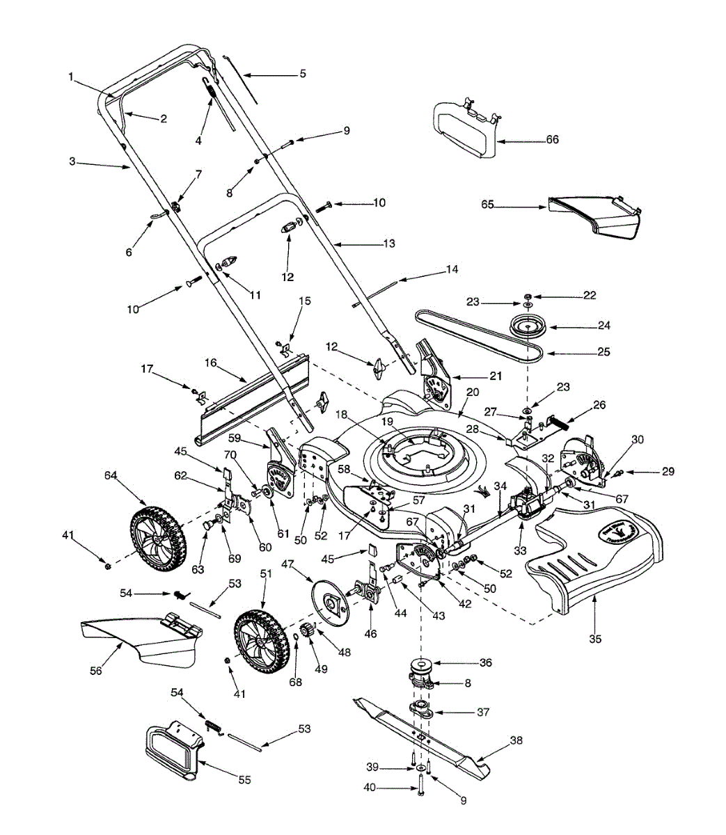 Replacement wheel assembly for walk-behind mowers and lawn equipment. Installs on axle to restore mobility. Order when wheel is cracked, broken, or worn.