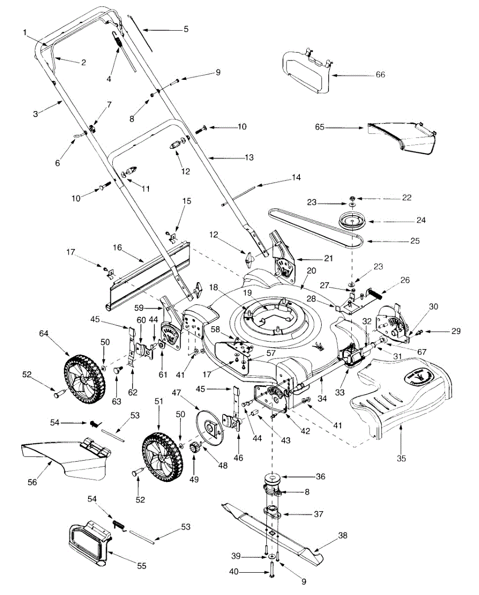 Drive bail handle for walk-behind and self-propelled mowers. Mounts to the upper handle assembly. Replace if cracked, bent, or broken for safe operation.