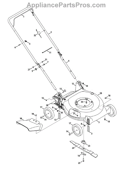This is a genuine replacement lower handle part. The lower handle is used on push lawn mowers. This handle connects the upper handle to the mower. This part should be replaced when there is damage to the bolt holes or if it is bent. It is not easily worn, and therefore does not have to be replaced often.To replace this part, a 7/16th inch wrench or a 9/16th inch socket wrench is needed. Remove the upper shoulder bolt to detach the upper handle. Remove the lower handle and place the new replacement part. Bolt the upper handle to the lower handle. On occasion, the bolt connecting the handles may need replacement if worn. Any new bolts will need to be purchased separately. Otherwise, previous bolts used on the worn lower handle can be reused. If the part is bent, replacement may require a mallet to dislodge or remove the damaged part. This is a genuine MTD replacement part. This part is compatible with most lawn mowers. This part is sold separately.