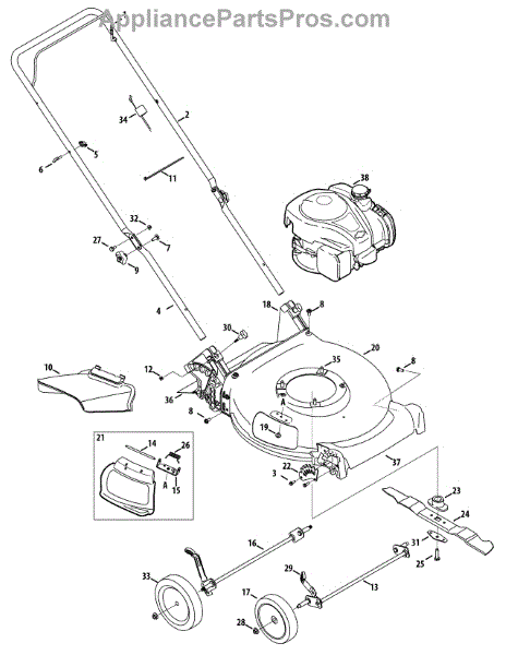 This is a genuine replacement lower handle part. The lower handle is used on push lawn mowers. This handle connects the upper handle to the mower. This part should be replaced when there is damage to the bolt holes or if it is bent. It is not easily worn, and therefore does not have to be replaced often.To replace this part, a 7/16th inch wrench or a 9/16th inch socket wrench is needed. Remove the upper shoulder bolt to detach the upper handle. Remove the lower handle and place the new replacement part. Bolt the upper handle to the lower handle. On occasion, the bolt connecting the handles may need replacement if worn. Any new bolts will need to be purchased separately. Otherwise, previous bolts used on the worn lower handle can be reused. If the part is bent, replacement may require a mallet to dislodge or remove the damaged part. This is a genuine MTD replacement part. This part is compatible with most lawn mowers. This part is sold separately.