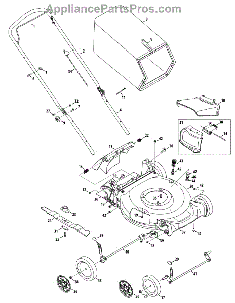 This is a genuine replacement lower handle part. The lower handle is used on push lawn mowers. This handle connects the upper handle to the mower. This part should be replaced when there is damage to the bolt holes or if it is bent. It is not easily worn, and therefore does not have to be replaced often.To replace this part, a 7/16th inch wrench or a 9/16th inch socket wrench is needed. Remove the upper shoulder bolt to detach the upper handle. Remove the lower handle and place the new replacement part. Bolt the upper handle to the lower handle. On occasion, the bolt connecting the handles may need replacement if worn. Any new bolts will need to be purchased separately. Otherwise, previous bolts used on the worn lower handle can be reused. If the part is bent, replacement may require a mallet to dislodge or remove the damaged part. This is a genuine MTD replacement part. This part is compatible with most lawn mowers. This part is sold separately.