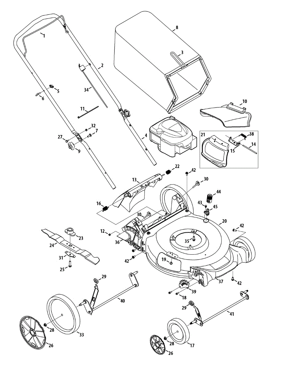 Replacement 21-inch mower deck chassis for walk-behind mowers. Installs as the main cutting deck housing. Replace if cracked, rusted, or damaged.