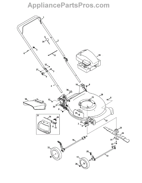 This is a genuine replacement lower handle part. The lower handle is used on push lawn mowers. This handle connects the upper handle to the mower. This part should be replaced when there is damage to the bolt holes or if it is bent. It is not easily worn, and therefore does not have to be replaced often.To replace this part, a 7/16th inch wrench or a 9/16th inch socket wrench is needed. Remove the upper shoulder bolt to detach the upper handle. Remove the lower handle and place the new replacement part. Bolt the upper handle to the lower handle. On occasion, the bolt connecting the handles may need replacement if worn. Any new bolts will need to be purchased separately. Otherwise, previous bolts used on the worn lower handle can be reused. If the part is bent, replacement may require a mallet to dislodge or remove the damaged part. This is a genuine MTD replacement part. This part is compatible with most lawn mowers. This part is sold separately.