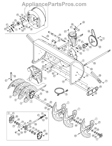 This is a genuine replacement flat idler pulley used in snowblowers. The idler pulley applies tension to the belt, allowing the belt to turn. If the pulley is causing loud noises or is seizing up, which can cause the belt to break, a replacement may be necessary. A broken belt will cause a snowblower to be unusable.The process for replacing this part will vary depending on the model of the snowblower, so consult the equipment's manual and diagrams for specific instructions. For all replacements, a wrench and/or a socket set of the correct size depending on the machine is needed. Dependent upon the repair needed, bearings and bushings may also need replacement, they are not included and must be bought separately. This is a genuine MTD replacement part. This replacement flat idler pulley is compatible with Craftsman, Cub Cadet, Ryobi, Troy-Bilt, Yard Machines, MTD, Huskee, Montgomery Wards, Bolens, and Yard-Man brands.