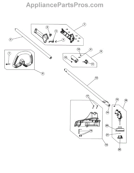 This coupler features a split-boom design that includes the knob, coupler, and the screws required to attach the upper shaft and lower boom before using the trimmer. Because of constant exposure and potential debris impacts, the coupler can become damaged over time and with regular use. The knob and screws can also become damaged or lost, which would require replacing the entire unit with an OEM replacement like the one here. This genuine OEM drive shaft coupler is manufactured by RYOBI and designed for use with their trimmers, as well as machines from MTD, Yard Man, Yard Machines, Bolens, Troy-Bilt, and Cub Cadet. It can also be used with select models of edgers and pruners from these brands. This coupler is sold as an individual assembly with all of the pieces required to complete the installation. The shaft is made of durable metal and the knob is a sturdy plastic piece. It will require a screwdriver with a Philips head to replace this part. Always wear gloves when working on lawn and garden equipment.