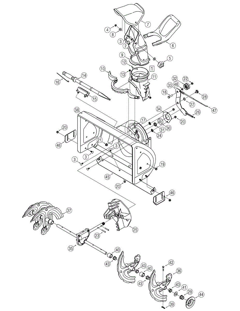 Upper chute assembly for gas snow throwers. Directs snow discharge from the auger housing. Replace if cracked, damaged, or missing. Installs on top.