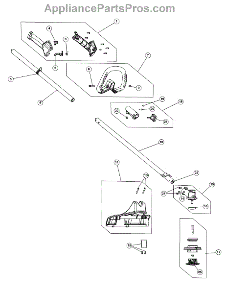 This coupler features a split-boom design that includes the knob, coupler, and the screws required to attach the upper shaft and lower boom before using the trimmer. Because of constant exposure and potential debris impacts, the coupler can become damaged over time and with regular use. The knob and screws can also become damaged or lost, which would require replacing the entire unit with an OEM replacement like the one here. This genuine OEM drive shaft coupler is manufactured by RYOBI and designed for use with their trimmers, as well as machines from MTD, Yard Man, Yard Machines, Bolens, Troy-Bilt, and Cub Cadet. It can also be used with select models of edgers and pruners from these brands. This coupler is sold as an individual assembly with all of the pieces required to complete the installation. The shaft is made of durable metal and the knob is a sturdy plastic piece. It will require a screwdriver with a Philips head to replace this part. Always wear gloves when working on lawn and garden equipment.
