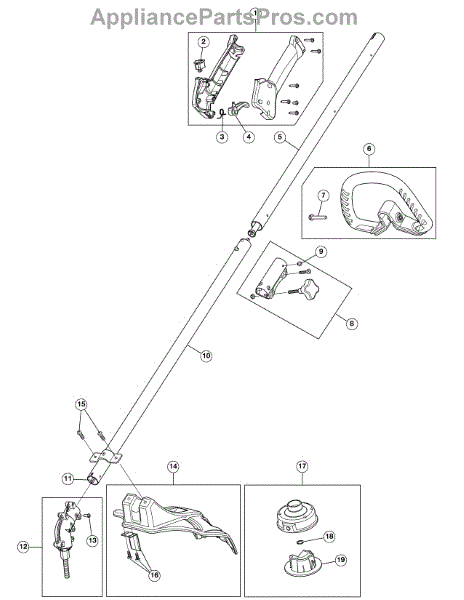 This coupler features a split-boom design that includes the knob, coupler, and the screws required to attach the upper shaft and lower boom before using the trimmer. Because of constant exposure and potential debris impacts, the coupler can become damaged over time and with regular use. The knob and screws can also become damaged or lost, which would require replacing the entire unit with an OEM replacement like the one here. This genuine OEM drive shaft coupler is manufactured by RYOBI and designed for use with their trimmers, as well as machines from MTD, Yard Man, Yard Machines, Bolens, Troy-Bilt, and Cub Cadet. It can also be used with select models of edgers and pruners from these brands. This coupler is sold as an individual assembly with all of the pieces required to complete the installation. The shaft is made of durable metal and the knob is a sturdy plastic piece. It will require a screwdriver with a Philips head to replace this part. Always wear gloves when working on lawn and garden equipment.
