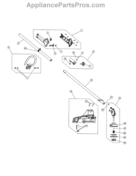 This coupler features a split-boom design that includes the knob, coupler, and the screws required to attach the upper shaft and lower boom before using the trimmer. Because of constant exposure and potential debris impacts, the coupler can become damaged over time and with regular use. The knob and screws can also become damaged or lost, which would require replacing the entire unit with an OEM replacement like the one here. This genuine OEM drive shaft coupler is manufactured by RYOBI and designed for use with their trimmers, as well as machines from MTD, Yard Man, Yard Machines, Bolens, Troy-Bilt, and Cub Cadet. It can also be used with select models of edgers and pruners from these brands. This coupler is sold as an individual assembly with all of the pieces required to complete the installation. The shaft is made of durable metal and the knob is a sturdy plastic piece. It will require a screwdriver with a Philips head to replace this part. Always wear gloves when working on lawn and garden equipment.