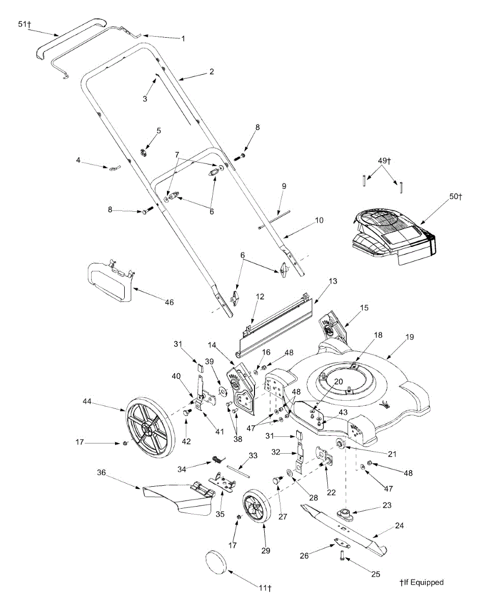 Replacement lower handle for walk-behind mowers. Installs at the base of the handle assembly. Replace if cracked, bent, broken, or damaged from impact.