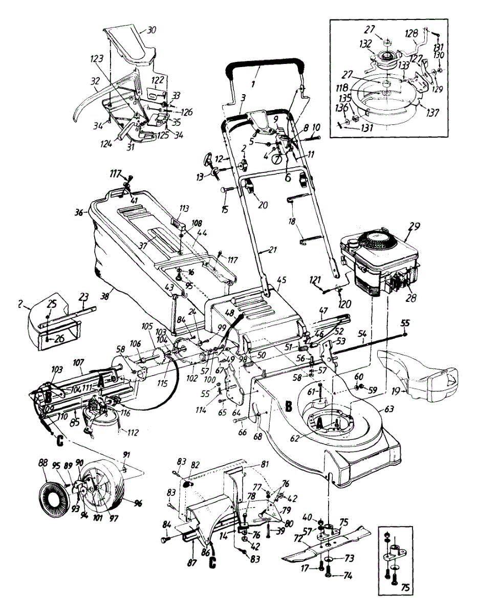 Curved head carriage screw secures upper and lower handles on lawn mowers and garden equipment. Replace if damaged, missing, or no longer holding handles.