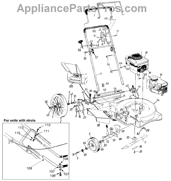 This is the front wheel assembly that is used by a large number of manufactures as the standard wheel for push mowers. This wheel is a tough, black rubber wheel fitted onto a sturdy white chassis. Since it is not a pneumatic wheel, there is no concern that it will roll over hidden debris and be damaged. Push wheels such as these often last the lifetime of a Lawn Mower. However, there are occasions when the housing of the mower is dropped and the wheel becomes warped or broken. It's also the case that, with constant use, the wheels can lose tread, making them harder to maneuver in tough mowing conditions. It has also been reported that the tires will wear and become smaller in circumference over time, meaning it will require more gasoline to mow the same amount of yard. The front wheels are easily replaced. After removing the plug cap and stabilizing the mower, simply use a socket wrench to remove the center bolt from the wheel. It's a good idea to use a dry lubricant like graphite on the axle before replacing it. This OEM guaranteed replacement part is compatible with Ryobi, Yard Machines, Troy-Bilt, Cub Cadet, Husky, Yard-Man, and MTD push mowers.