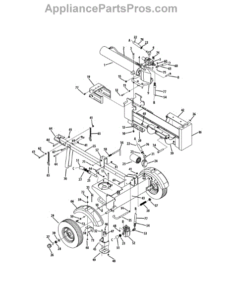 This is a wedge assembly that is made for use with log splitters. The component is located on the hydraulic cylinder of the splitter. This part presses into a log so the piece can be split quickly and easily. Over time and with use, the wedge assembly may become damaged or break. When this occurs, the log splitter may not operate correctly and the part will need to be replaced.When replacing the wedge assembly, a hammer, adjustable wrench, and socket set may be needed. A pair of work gloves will also be useful. First, turn off the log splitter and place it on a stable surface. Make sure the spark plug wire is disconnected. Remove the bolts holding the old wedge assembly in place and remove it from the tool. Replace this part with a new OEM component and reassemble.The wedge assembly is a genuine replacement part that is sourced directly from the manufacturer. It is sold as an individual part. This component is made to be compatible with log splitters created by Craftsman, MTD, Troy-Bilt, and Yard Machines.