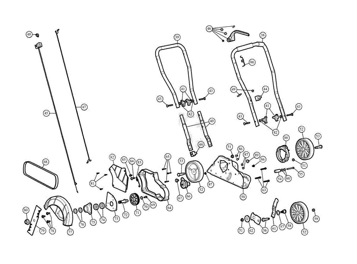 Throttle control cable for edgers and powered lawn equipment. Replaces worn, frayed, or broken cables that prevent proper engine speed adjustment.