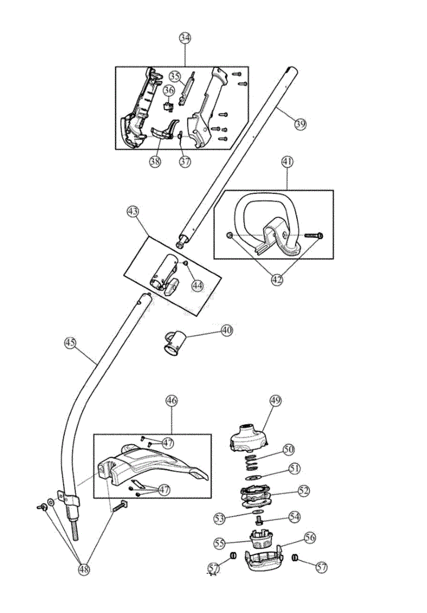 Upper boom assembly for gas line trimmers. Connects the engine housing to the cutting head. Replace if cracked, bent, or structurally damaged.
