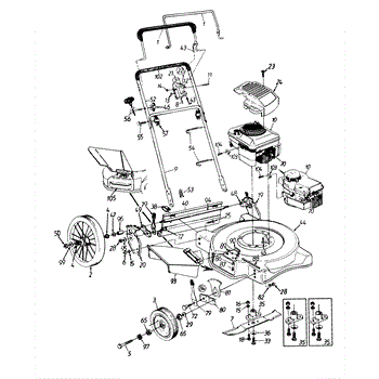 This is the front wheel assembly that is used by a large number of manufactures as the standard wheel for push mowers. This wheel is a tough, black rubber wheel fitted onto a sturdy white chassis. Since it is not a pneumatic wheel, there is no concern that it will roll over hidden debris and be damaged. Push wheels such as these often last the lifetime of a Lawn Mower. However, there are occasions when the housing of the mower is dropped and the wheel becomes warped or broken. It's also the case that, with constant use, the wheels can lose tread, making them harder to maneuver in tough mowing conditions. It has also been reported that the tires will wear and become smaller in circumference over time, meaning it will require more gasoline to mow the same amount of yard. The front wheels are easily replaced. After removing the plug cap and stabilizing the mower, simply use a socket wrench to remove the center bolt from the wheel. It's a good idea to use a dry lubricant like graphite on the axle before replacing it. This OEM guaranteed replacement part is compatible with Ryobi, Yard Machines, Troy-Bilt, Cub Cadet, Husky, Yard-Man, and MTD push mowers.